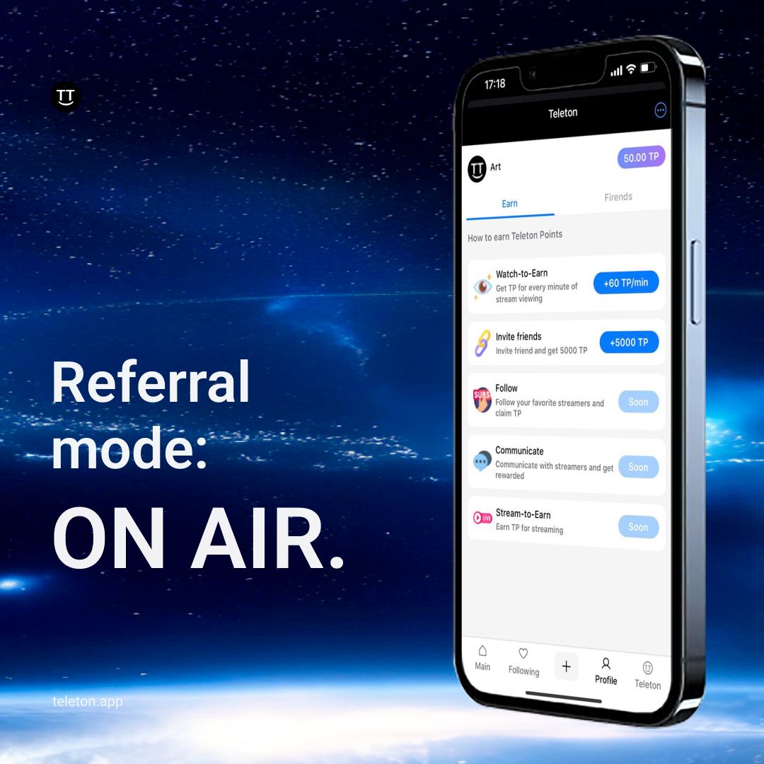 Now you can invite your friends to join Teleton and earn rewards together. The first 100 users who refer 50 friends will receive extra Teleton Points.